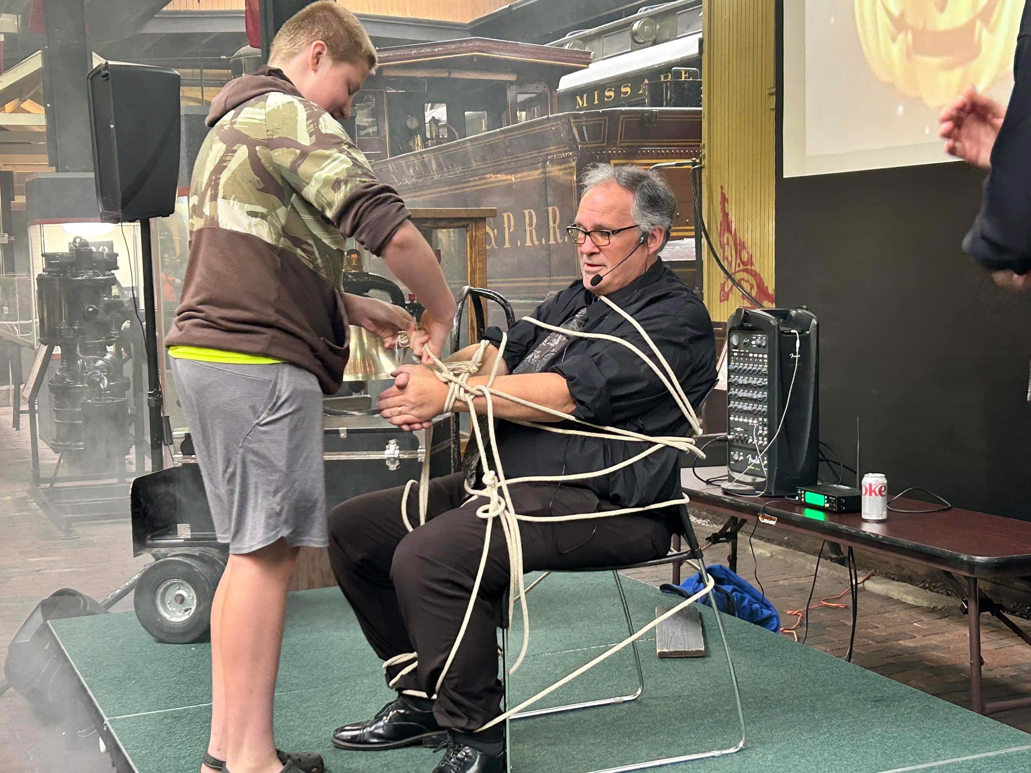 “Your act is delightful and the families enjoyed it a lot. I’m so sorry about the rain interruption, but I will always have a picture in my mind of your valor as you “unroped” yourself and followed the great tradition: “The Show Must Go ON!”